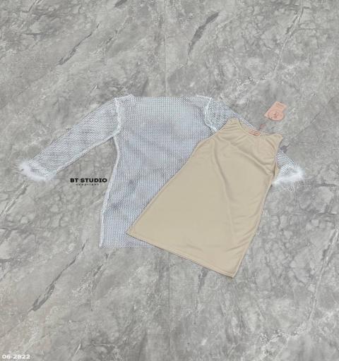 DETAIL : เซท 2 ชิ้น เดรสสั้นแขนยาว เนื้อผ้าตาข่ายแต่งคริสตัลเม็ดเล็ก ๆ ทุก ๆ ช่อง งานสวยม๊าก ปลายชายแขนแต่งขนฟู ๆ ทั้งสองข้าง มาพร้อมซับในสีนู๊ดแขนกุด แมทซ์กันสวย แซ๊บบ แต่ดูแพงค่ะ