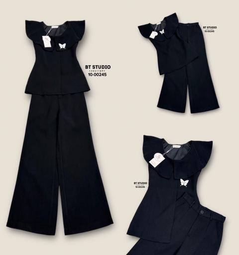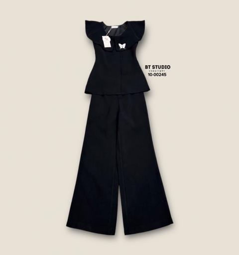 เซท 3 ชิ้น เสื้อแต่งระบายคอปกติดแขนกระดุมแป๊กซ่อนด้านใน มาพร้อมกางเกงขายาวเอวสูง