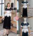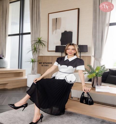 DETAIL : ชุดเซ็ท 2 ชิ้นเสื้อคอปกแขนสั้นดีเทลสีทูโทนแต่งสายสีดำคาดเอวพิมพ์ลายแต่งตามแบบ ทำซิปหลังมีซับใน มาพร้อมกระโปรงอัดพรีทยาว มีซับใน งานสวยเนื้อผ้าดีคัตติ๊งสวย