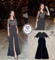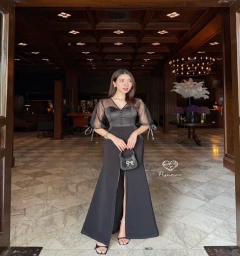 เดรสแขนยาวซีทรูสีดำทรงหางปลาผ่าหน้าทรงสวย หรู ดูแพงมาก ใ