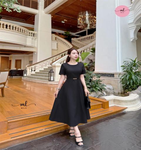𝐃𝐞𝐭𝐚𝐢𝐥 : เดรสยาวคอกลมแขนสั้น สีดำเรียบหรู ทรงสวยเข้ารูปช่วงเอว ตัดเย็บเนี้ยบ ใส่แล้วดูผอมเพรียว พร้อมเข็มขัดหัวทองเพิ่มความหรูอย่างลงตัวกระโปรงทรงบานเล็กน้อย ช่วยพรางช่วงสะโพกได้ดี ใส่ได้ทั้งทำงาน ออกงาน หรือโอกาสสุภาพ