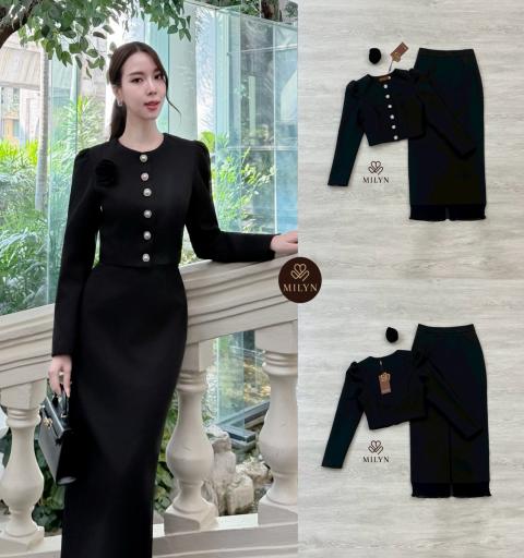 𝐃𝐞𝐭𝐚𝐢𝐥 : Set 2 ชิ้น เสื้อคอปแขนยาวสีดำแต่งด้วยกระดุมหน้าใช้งานได้จริง มาพร้อมกับกระโปรงยาวทรงเอแต่งระบายด้านล่างแหวกชายหลังชายกระโปรงซิปหลัง มาพร้อมกับเข็มกลัดดอกไม้สีดำใส่แมตช์กันกับชุดลงตัวดูดีมากค่ะ