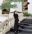 Set 2 ชิ้น เสื้อคอปแขนยาวสีดำแต่งด้วยกระดุมหน้าใช้งานได้จริง