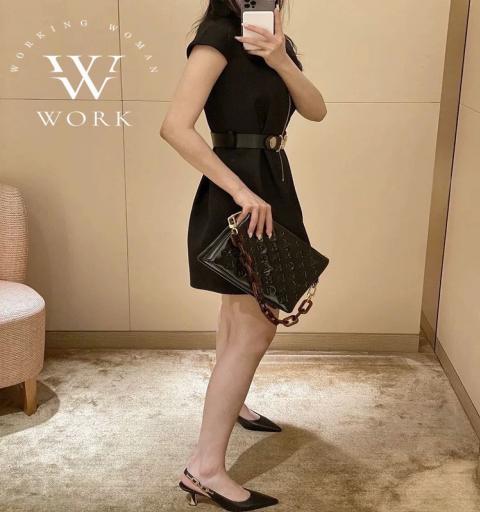 Louis Vuitton Ready to Wear Formal Dress เดรสสีดำแขนสั้นทรงแขนงุ้ม ตัดเย็บจากผ้าเนื้อดีหนานุ่ม เกรดพรีเมี่ยม แพทเทิร์น ซิปหน้าครึ่งตัว หัวซิปเป็นหนังลาย monogram ที่เป็น signature ของแบรนด์ ตัดต่อช่วงเอวเจ็วทวิสจับจีบช่วงเอว 2 ทวิส ทำให้เอวคอดมากขึ้น มาพร้อมเข็มขัดหนังเกี่ยวตะขอช่วงเอว ได้ลุคผู้ดีสไตล์ hi-end แบบสุดๆ กิมมิคเก๋ ใส่ทำงานคือดูดี่ะ