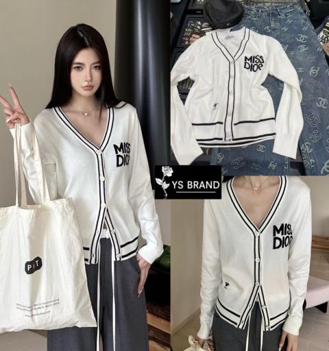 Brand: Chanel Detail :เสื้อคลุมไหมพรมแขนยาว ผ้าไหมพรมยืดเนื้ออย่างดี ผ้าดีมากๆ ทอลาย Miss Dior ช่วงอก เย็บกระดุม CDด้านหน้า ปัก CD สวยโดดเด่นมากๆ แมทได้เยอะ มาพร้อมป้าย Christian Dior Tag ครบ สวยมาก งานคุณภาพ ห้ามพลาด จัดเลยจ้า