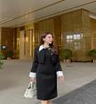 ชุดเดรสทรงสุภาพ เรียบหรูดีไซน์ สีดำตัดกับปกและปลายแขนเสื้อสีขาว เ