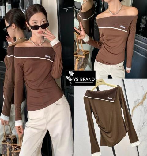 Brand: miu miu Detail :เสื้อยืดแขนยาว ทรงเปิดไหล่เฉียง เย็บmiu miu สวยมากๆ ผ้ายืดเนื้อนิ่มอย่างดีผ้าดีมากๆ ยืดได้เยอะ เย็บกระดุมช่วงคอ สวยโดดเด่นมากๆ มาพร้อมป้ายคอ miu miu Tagครบสวยมาก งานคุณภาพ ห้ามพลาด จัดเลยจ้า