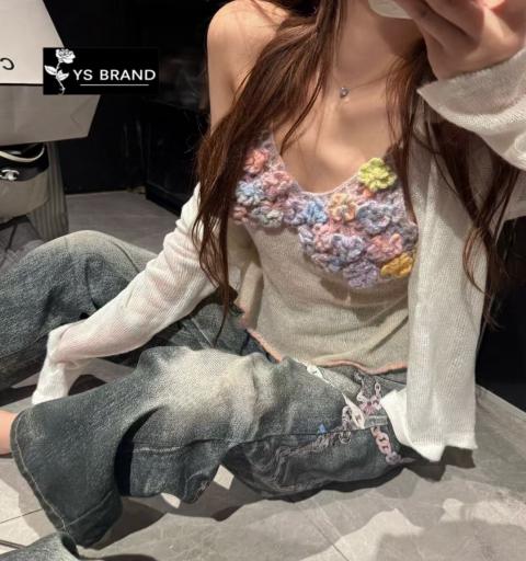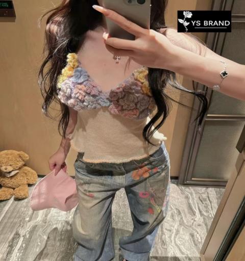 Brand: Korea Fashion Detail :เสื้อสายเดี่ยวงานเกาหลี ไหมพรมเนื้อนิ่มอย่างดี ถักลวดลายดอกไม้สีสันสดใสที่อก สวยโดดเด่นมากๆ แมทได้เยอะ สวยมาก งานคุณภาพ ห้ามพลาด จัดเลยจ้า