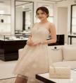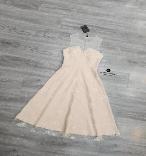 เดรสยาวสีครีมผ้าลูกไม้ลายดอกไม้มีเท็กเจอร์ในตัว