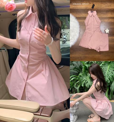 เซตสีชมพูนมๆ น่ารักมากๆคะ เสื้อคอปกกระดุมหน้า