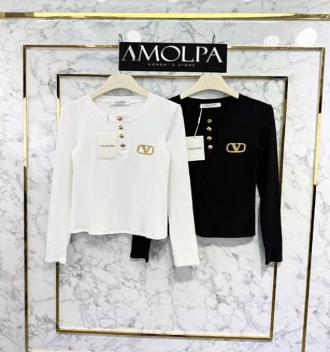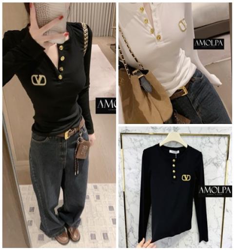 พร้อมส่ง!! เสื้อแขนยาว VALENTINO ผ้าร่อง กระดุมทอง