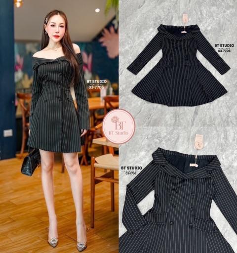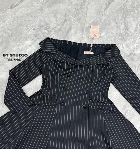 DETAIL : เดรสสั้นดีไซส์ปาดไหล่ปิดต้นแขนทั้งสองข้างแขนยาวแต่งปกช่วงปาดไหล่ กระดุมปั้มเรียงกันด้านหน้า 8 เม็ด งานสวยเนื้อผ้าลายริ้วแนวตรง ใส่แล้วดูผอมเพรียว อกเข้ารูป เอวสะโพกแต่งบานออก งานสวยเนื้อผ้าดี สาย CEO ลัคชูห้ามพลาดค่ะ