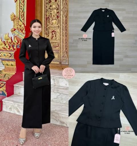 งามอย่างแม่หญิงกุลสตรีไทย   New Arrival by Athena  พร้อมส่ง Size.S M L XL Tag  :Athena (อธีน่า) Brand Detail :: เสื้อ+กระโปรง+เข็มกลัด Set 3 ชิ้นสุดคุ้ม! เสื้อแขนยาวดีไซน์ ด้านหน้าแต่งกระดุมเรียงสามารถแกะใช้งานได้จริง ตกแต่งเข็มกลัด(สามารถถอดออกได้) แมตช์มาคู่กับกระโปรงป้ายทบคล้ายงานผ้าถุงสำเร็จ ชายกระโปรงด้านหลังผ่า เนื้อผ้าดี๊ดีมีน้ำหนักและมีTexture งานมีซับใน สวมใส่แบบซิปด้านหลัง สวยหรูหราโดดเด่น งดงามอย่างกุลสตรีไทยค่า  รับประกันคุณภาพ คัดติ้ง แพทเทิลเป๊ะใส่ใจทุกรายละเอียด ตัดเย็บด้วยช่างฝีมือดีคุณภาพเกินราคาแน่นอน  Color:: 1 สีตามรูปงานจริง Size ขนาดโดยประมาณ S อก 32 เอว 26 สะโพก 36” M อก 34 เอว 28 สะโพก 38” L อก 36 เอว 30 สะโพก 40” XL อก 38 เอว 32 สะโพก 42” ความยาวเสื้อ 21.5“ ความยาวกระโปรง 38” หมายเหตุ : สีและแสงอาจแตกต่าง ขึ้นอยู่กับอุปกรณ์สื่อสารใช้ดูรูปภาพ  การเก็บรักษา: ซักแห้ง Dry Clean only เพื่อเป็นการถนอมผ้าที่ดี |