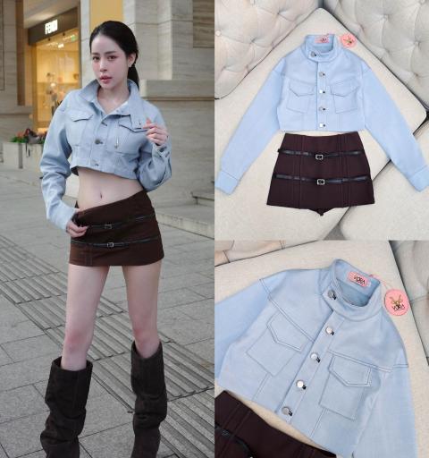 Detail : Set เสื้อแจ็คเก็ตยีนส์แขนยาวตัวสั้น คอปก ติดกระดุมเรียงด้านหน้า แต่งกระเป๋าช่วงอก แมทช์กับกระโปรงสั้นเอวต่ำ ดีเทลแต่งเข็มขัดด้านหน้า2เส้น มีซับกางเกงด้านใน เนื้อผ้าเนื้อดี ผ้าหนาเป็นทรงสวย สามารถแยกใส่กับชุดอื่นได้อีกเยอะเลยค่ะ... ใส่ออกมาแล้วเป๊ะเว่อร์ แพทเทรินเนี๊ยบสุดๆ สามารถใส่ได้ในทุกโอกาสเลยค่า...
