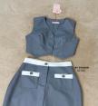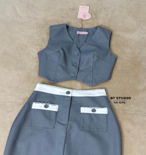 เซท 2 ชิ้น เสื้อแขนกุดเบเซอร์คอวีกกระดุมหน้าปลายชายหยัก