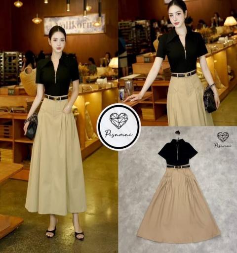 Detail :: เซ็ตเสื้อผ้าร่องคอปกแต่งชิป มาคู่กับกระโปรงตีเกร็ดช่วงกระเป๋าสีน้ำตาล พร้อมเข็มขัดอะไหล่ทองเข้าเซ็ต สวย สง่า มาพร้อมเข็มขัดครบเซ็ต เฟียสๆ แกรมๆ ได้ไม่ซ้ำใคร ต้องมีเลยค่า