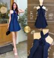 Dress เดรสเกาะอก มีสายคล้องคอ มีดอกไม้ 1ดอก อกมีฟองน้ำ