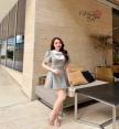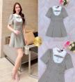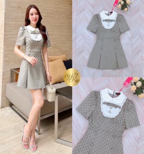 Dress เดรสแขนสั้น คอบัว อกเย็บโบว์และเย็บกระดุมเพชร