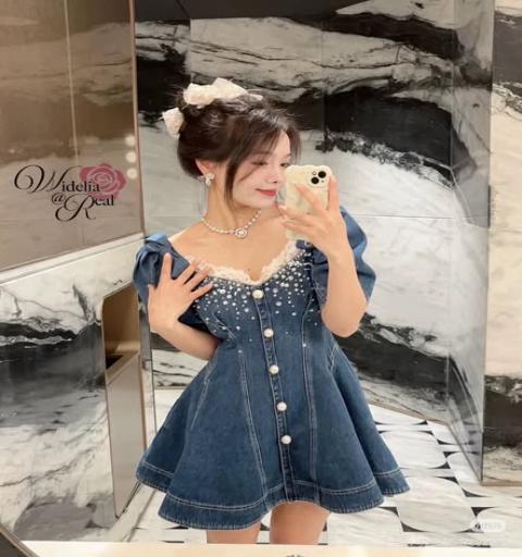 So cute ชุดนี้ใส่แล้วน่ารักมาก Detail >> Dress เดรสแขนพอง คอเหลี่ยม ไหล่เย็บโบว์ อกเย็บลูกไม้สีขาว อกแต่งไข่มุกเม็ดเล็กๆ ตัวชุดแต่งกระดุมไข่มุกเม็ดใหญ่ ซิปหลัง กระโปรงทรงบานพอง มีกระเป๋าล้วง2ข้าง เนื้อผ้ายีนส์แท้100% ผ้าอย่างดี ใส่สบาย งานสวย ทรงเป๊ะ คัทติ้งเนี้ยบมากๆค่ะ รับรองใส่ออกมาไม่ผิดหวังการันตีให้เลย บอกเลยห้ามพลาดเด็ดขาดงานดีงานสวยจริงต้อง Widelia @ Real ** Size **(โดยประมาณ) S : อก 32 เอว 26 สะโพก free ยาว 32 M : อก 34 เอว 28 สะโพก free ยาว 32 L :: อก 36 เอว 30 สะโพก free ยาว 34  Care :: รุ่นนี้ แนะนำ ควรซักแห้ง เท่านั้น ( Dry clean only ) Wholesale :: 990  แพทเทิล คัตติ้ง ทรงเป๊ะ  เนื้อผ้าเป๊ะ คุณภาพ แน่น  ตัดเย็บ ด้วยช่างคุณภาพฝีมือเยี่ยม  Everything Best  |