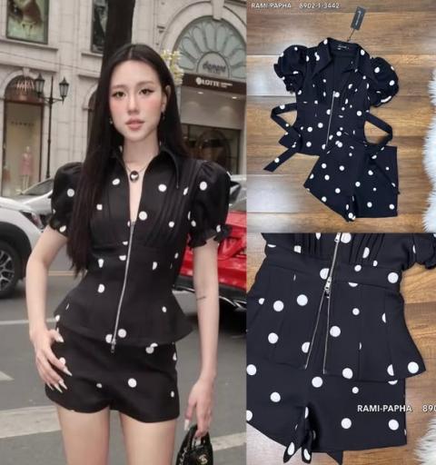 เสื้อคอปกดีไซน์เก๋ สีดำลายจุดสุดฮ๊อต ซิปด้านหน้า สามารถปรับรูดได้ทั้งบนและล่าง ดีเทลกุ้นเส้นด้านหน้าสวยเก๋ แขนตุ๊กตาตั๊กล๊าก ปลายแขนเย็บยืดหยุ่นอย่างดี ด้านหลังมัดผูกเอวสับ ซับในอย่างดีทั้งตัว
