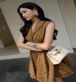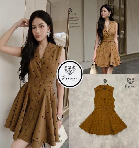 เดรสแขนกุดตัวสั้นลายจุดสีน้ำตาลpolkadot