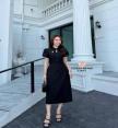 Dress+เข็มกลัด เดรสคอปีนดีไซน์แขนเสื้อเป็นทรงกลีบบัวช่วยพรางต้นแขน