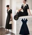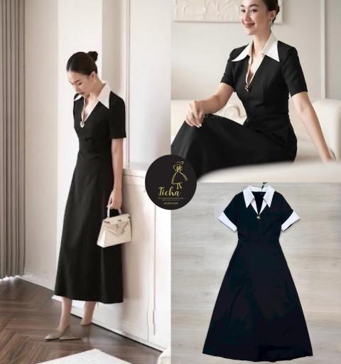 Maxi เดรสสีดำ ดีเทลแต่งคอปกสีขาว และขอบแขน