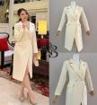 เดรสสูทแขนยาว ดีไซน์ปกเงาเพื่อความหรูหรา กระดุมด้านหน้า
