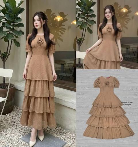 𝖣𝖾𝗍𝖺𝗂𝗅 : เดรสยาวขนมชั้นสีน้ำตาล