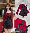 Set จั้มสายเดี่ยวกางเกงขาสั้น จับจีบย่นช่วงอก เนื้อผ้าพิมพ์ลายเนื้อดีผ้าหนาเป็นทรง