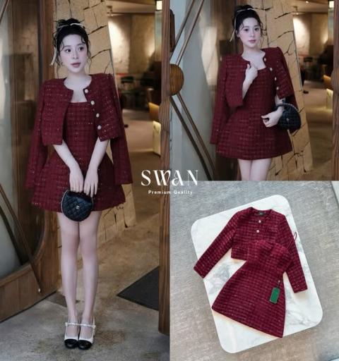 Available Now พร้อมส่ง  รุ่นนี้มี 4 ไซส์ XS S M L Detail : Set 2 ชิ้น เสื้อคลุม + เดรส โทนแดงไวน์เนื้อผ้าทวีดผสมกลิตเตอร์เล็ก ๆ ให้ลุคหรูหวาน เสื้อคลุมทรงสั้นคอกลมติดกระดุมหน้าช่วยเพิ่มความเนี้ยบ เดรสด้านในทรงเข้ารูปช่วงเอวกระโปรงบานเล็กน้อยช่วยพรางสัดส่วน ใส่แล้วดูสุภาพแต่ยังคงความน่ารัก เหมาะทั้งออกงาน ดินเนอร์ หรือโอกาสพิเศษที่อยากได้ลุคผู้ดีดูแพง Swan Studio เราใส่ใจทุกขั้นตอนการผลิต ตั้งแต่แพทเทิร์น เนื้อผ้า การตัดเย็บ เก็บทุกรายละเอียด Size : ขนาดโดยประมาณ XS : Bust 30” Waist 24” Hip 34” S : Bust 32” Waist 26” Hip 36” M : Bust 34” Waist 28” Hip 38” L : Bust 36” Waist 30” Hip 40” ขนาดไซด์วัดจากงานขายจริง แพทเทิร์นแต่ละชุดอาจจะต่างกันเล็กน้อย ทางร้านไม่รับเปลี่ยน หรือคืนในกรณีที่ใส่ไม่พอดีนะคะ หมายเหตุ : สีและแสงของชุด อาจต่างกันได้บ้าง ขึ้นอยู่กับโทรศัพท์มือถือหรืออุปปกรณ์อื่นๆที่ใช้ดู การดูแลรักษา : แนะนำซักแห้งหรือซักมือเพื่อถนอมผ้า ไม่ควรแช่ผ้า หรือซักร่วมกับน้ำยาฟอกขาว |