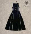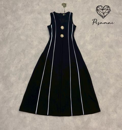 เดรสแขนกุดตัวยาวสีดำแต่งลายเส้นนูนสีขาว