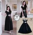 เดรสคอปกทูโทนขาวดำตังยาวบาน มาพร้อมเชือกสามารถพันไขว้เป็นดีเท็ลเก๋