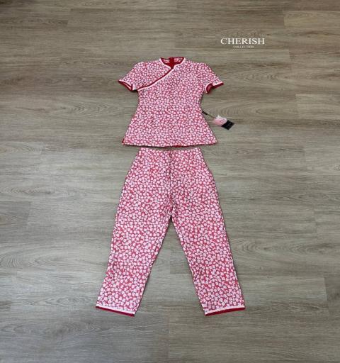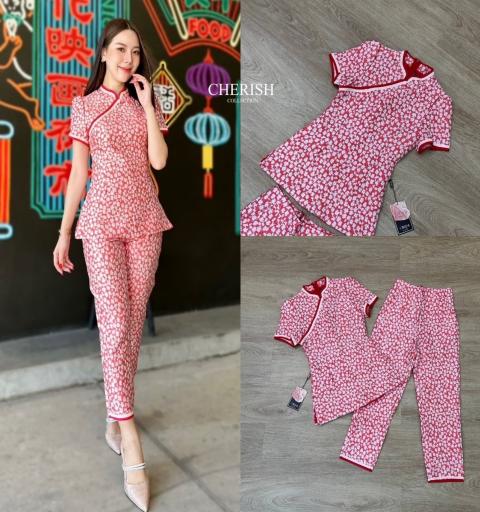 เซ็ทเสื้อคอจีน แขนตุ๊กตา แต่งขอบกุ๊นรอบตัว