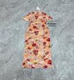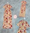 เดรสกี่เพ้ายาวแขนสั้น คอจีนเนื้อผ้าดำมีหยี่สีครีมตัดลายดอกไม้สีแดงและเหลือง