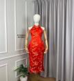 เดรสกี่เพ้าคอจีนแขนกุด แต่งกระดุมจีนตรงกลางคอ