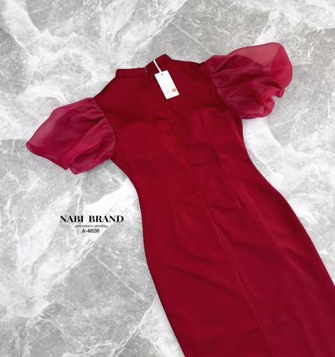 เดรสยาวทรงสอบผ้าเงาลื่นแดงเรดไวน์