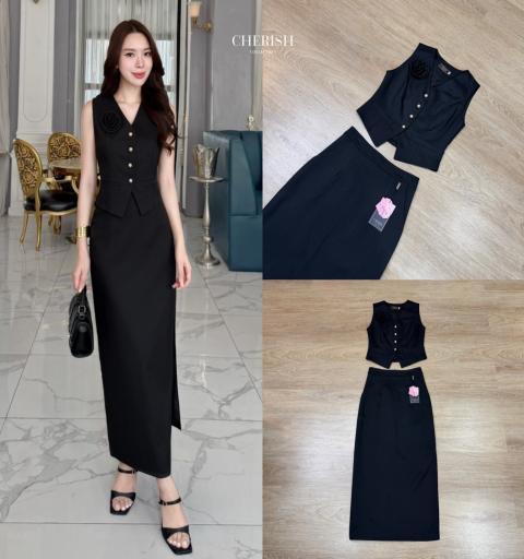 𝘿𝙚𝙩𝙖𝙞𝙡𝙨 :: ชุดเซ็ท 2 ชิ้น เสื้อ+กระโปรง ตัวเสื้อกั๊กแขนกุดคอวี ตัวเสื้อเป็นกระเป๋าหลอก 2 ข้าง ตกแต่งกระดุมทอง แถมเข็มกลัดดอกไม้สามารถถอดได้ มาพร้อมกระโปรงเอวสูงผ่าข้าง มีกระเป๋า 2 ข้างใช้งานได้จริง มีซับในทั้งชุด ชุดนี้จะใส่ไปเที่ยวหรือใส่ทำงาน ดูเก๋โก้สุดๆคร่า