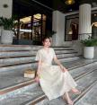 ชุดเซ็ทลูกไม้ เสื้อ+กระโปรง สุดน่ารัก ตัวเสื้อคอวีแขนสั้นฉลุลูกไม้ทั้งตัว