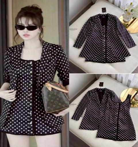 งานเซ็ท เดรส กับ เสื้อสูท ผ้าดีมาก Polka Dot สุดฮอต สีคลุมโทน
