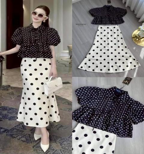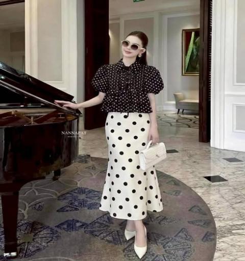 T AG :: NANNAPAT (NP)  CONCEPT :: งานต้อง Premium กำไรน้อยไม่ว่า คุณภาพ เละ เนื้อผ้าต้องดี  ♡DETAILS♡  "*  Timeless Elegance: ความสวยที่ไม่มีวันตกยุค  "เปลี่ยนลุคให้ดูแพง สไตล์คุณหนูยุโรป"  จะ Afternoon Tea หรือนัดสำคัญชุดนี้คือคำตอบ! เสื้อดีเทลระบายชั้นๆผูกโบว์น่ารัก แมตช์กับกระโปรงทรงหางปลาที่ช่วยเน้นสัดส่วนให้ดูเพรียวสวย ลายจุด Polka Dot มอบความสดใสและคลาสสิกในเวลาเดียวกัน เป็นความละมุนที่ดูมีระดับจนใครก็ปฏิเสธไม่ได้  COLOR 》》》  NP. STANDARD SIZE  (โดยประมาณนะค่ะ) S }} Bust 32-33"/ Waist 26-27"/ Hip 36-37" M }} Bust 34-35"/ Waist 28-29"/ Hip 38-39" L }} Bust 36-37"/ Waist 30-31"/ Hip 40-41" XL }} Bust 38-39"/ Waist 32-33"/ Hip 42-43" Langth }} = Shirt 17.5" / Skirt 36"  Care Dry clean only ควรซักแห้ง หรือ ซักมือ และเลี่ยงน้ำยาซักผ้า เพื่อเป็นการถนอมผ้า และ ลดความเสียหายวัสดุตกแต่ง นะคะ  ตรวจสอบสินค้าทุกครั้งก่อนออกจากร้านนะคะ จะได้ไม่เสียเวลาคะ  เปลี่ยนคืนสินค้ามีตำหนิต้องภายใน 10 วันนะคะ ป้ายไม่ตัด ห่อเดิมนะคะ  ได้รับสินค้าแล้ว ถ่ายวีดีโอตอนแกะเช็คสินค้าทุกครั้ง เผื่อมีปัญหา จะได้ใว้ยืนยันเพื่อเปลี่ยนคืน |