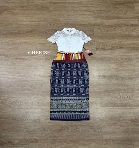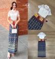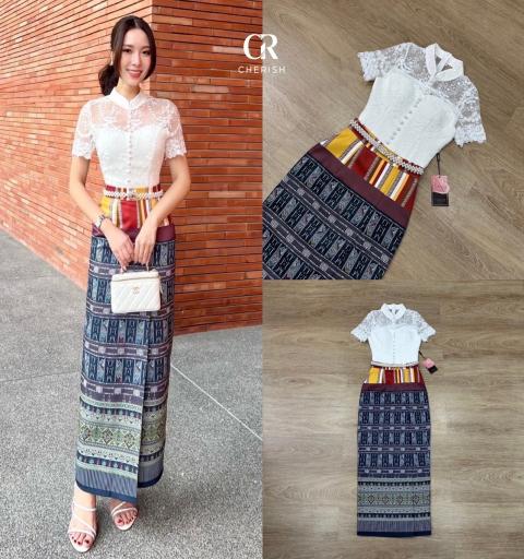 เซ็ทชุดไทย ชุดงานบุญ 3 ชิ้น เสื้อลูกไม้แต่งกระดุมมีซับในอย่างดี
