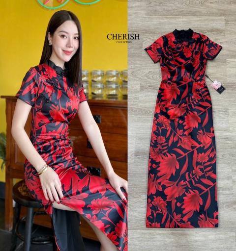🧧𝘾𝙃𝙀𝙍𝙄𝙎𝙃 ( เชอริช )🧧 ราคา:: 790 บาท พร้อมส่ง!! 𝙓𝙎 𝙎 𝘿𝙚𝙩𝙖𝙞𝙡𝙨 :: เดรสยาวทรงกี่เพ้า ทรงสวยหรู มีทั้งความผู้ดี และ ความหรู ความแพงในตัว ดีเทล ผ้าพิมลายดอก แต่งขอบคอ และกุ๊นสีดำตัดแดงไวน์ ดูหรูหรามากกก ช่วงกระโปรงผ่า 2 ข้างให้ความเซ็กซี่จิ๊ดๆ เนื้อผ้านุ่ม ซับในอย่างดี เป็นชุดที่ Must Have อย่างมากคร่าาา