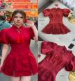 ลุคอาหมวยพรีเมียมในชุดกี่เพ้าสีแดงมงคล