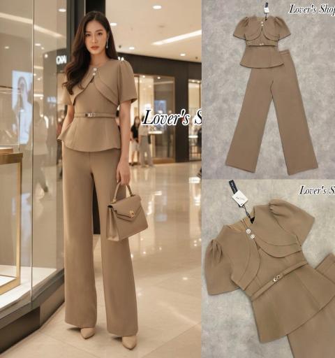 Love's Sho    Set.3ชิ้น ลุคเรียบหรูดูผู้ดี (เสื้อ+กางเกง+เข็มขัด)  [พร้อมส่ง]