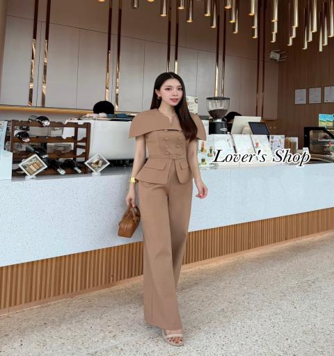 Set เสื้อ+กางเกง พร้อมเข็มขัด สวยยกเซ็ทค้า ลุคเรียบหรูดูผู้ดี