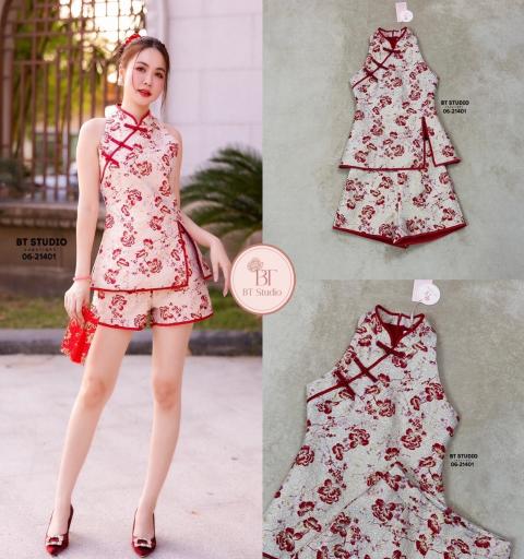 DETAIL : เซท 2 ชิ้น เสื้อแขนกุดคอจีนลายผ้าดอกไม้ แต่งแทบจีนกระดุมจีน ปลายชายผ่าด้านข้าง มาพร้อมกางเกงขาสั้นปลายชายแต่งขอบแดง งานสวยเนื้อผ้าดี มีซับในคัตติ๊งสวยมากกก