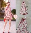 เซท 2 ชิ้น เสื้อแขนกุดคอจีนลายผ้าดอกไม้ แต่งแทบจีนกระดุมจีน