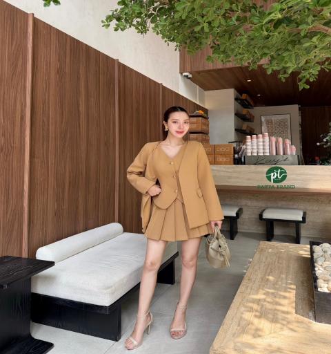 👗👗Detail : Set 4ชิ้น เสื้อสูท+เสื้อกั๊ก+กระโปรง+เข็มกลัด เสื้อคลุมสูทแขนยาวสีน้ำตาล ดีเทลแต่งกุ้นขอบกระเป๋า เสริมฟองน้ำบ่าบางๆเพื่อให้ทรงสวยขึ้น มาคู่กับเสื้อกั๊กแขนกุดสีเดียวกันแต่งกระดุมสีทองใช้งานได้จริง ( อกเสริมฟองน้ำ) มาพร้อมกับกระโปรงสั้นอัดจีบพลีทรอบตัวชายบานออกเล็กน้อย (ซิปข้าง และ มีซับใน) เพิ่มเข็มกลัดโซ่ผีเสื้อสีทอง ติดอกเก๋ๆ ดีไซน์สวย คุ้มสุดๆ ทรงสวยแพทเทิร์นเป๊ะ