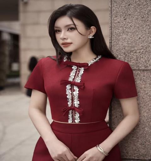 Set เสื้อแขนสั้นกับกางเกงขาบานยาว งานเนื้อผ้าอย่างดี